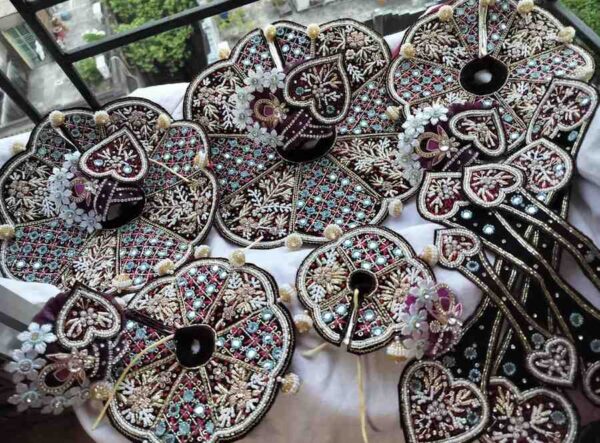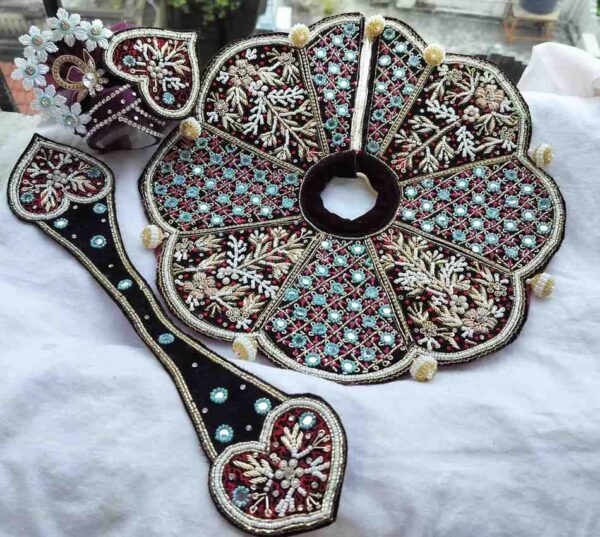 Each piece is handcrafted with premium fabric, intricate zari work, and golden lace to give your Thakur Ji a majestic appearance β perfect for wedding rituals, puja, or festive dΓ©cor.